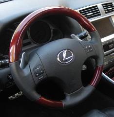 DCTMS Lexus IS standard type wood and leather steering wheel, black smooth leather wrap with black stitching ST050T09W - with dark ash green wood grain ST050T10W - with cherry red wood grain